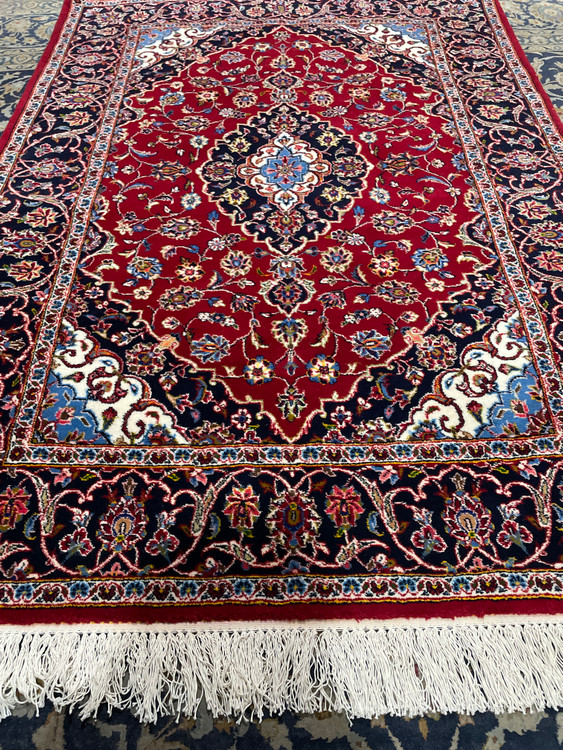 قالیچه دستبافت لاکی کاشان درحد نو سالم و خوابدار بدون هیچ عیبی بافت بسیار ریز خوش رنگ ریشه ها سالم و در حد نو اندازه ۲ در ۱/۴۰
