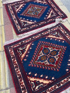 یک جفت پشتی دستبافت آبی میمه جوشقان و یک تخته لاکی میمه جوشقان خوابدار و سالم بدون هیچ عیبی ریشه ها سالم اندازه پشتی آبی ۸۰در ۷۰و اندازه پشتی لاکی ۶۰در ۸۰ پشتی ها برای استفاده در منزل بسیار زیبا و خوش نقشه و خوش رنگ میباشد فرش ها در کاشان هست