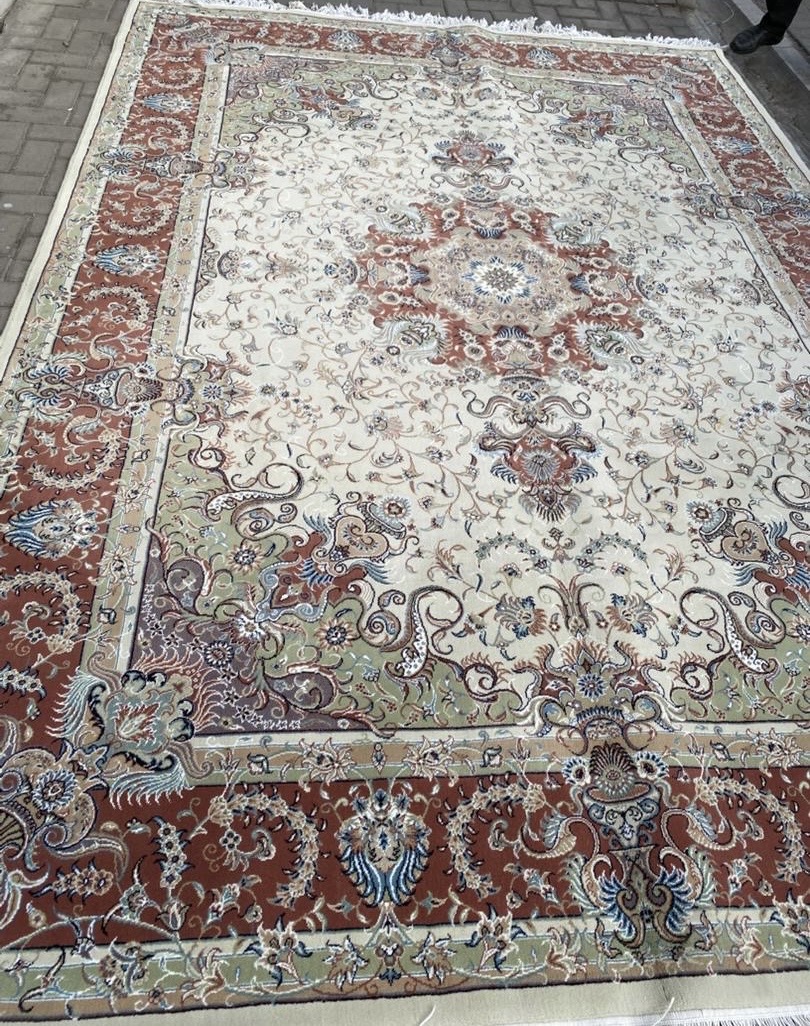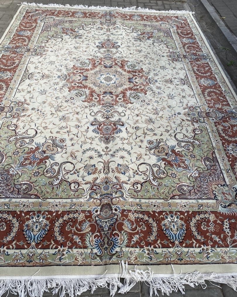 سه تخته ۹متری ماشینی یک نقشه در حد نو جنس آکرلیک خالص ۵۰۰شانه تراکم ۱۲۰۰بهترین بافت crxوزن سنگین شسته شده بدون هیچ عیبی سالم و ریشه ها سالم